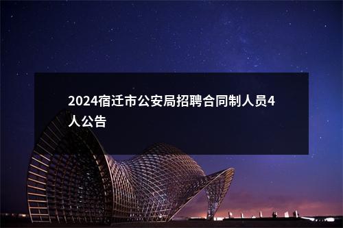根据工作需要和有关规定,宿迁市公安局面向社会公开招聘合同制人员4名(非人民警察身份且非事业编制人员身份)。现将有关事项公告如下: